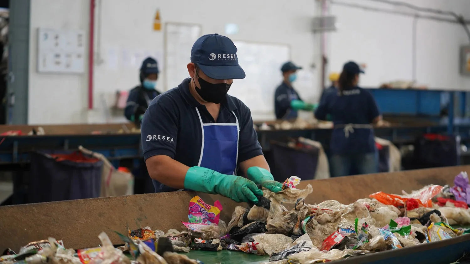 Het ReSea Project verzamelt plastic uit oceanen en rivieren voor de kust van Jakarta, Indonesië. Het verzamelde plastic wordt gesorteerd en overgedragen aan lokale afvalbanken, die het vervolgens recyclen.
